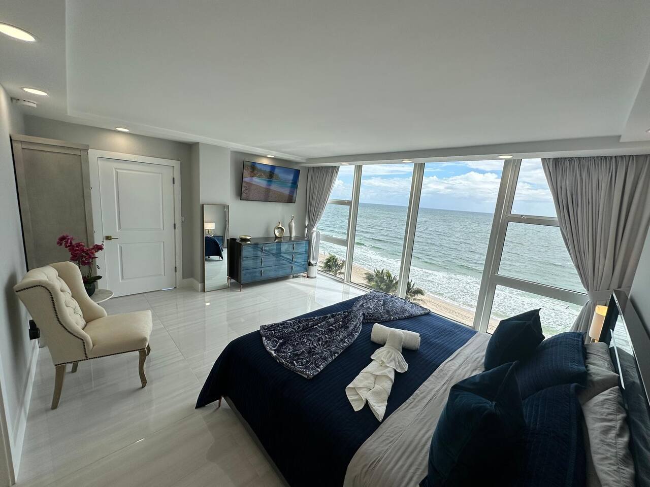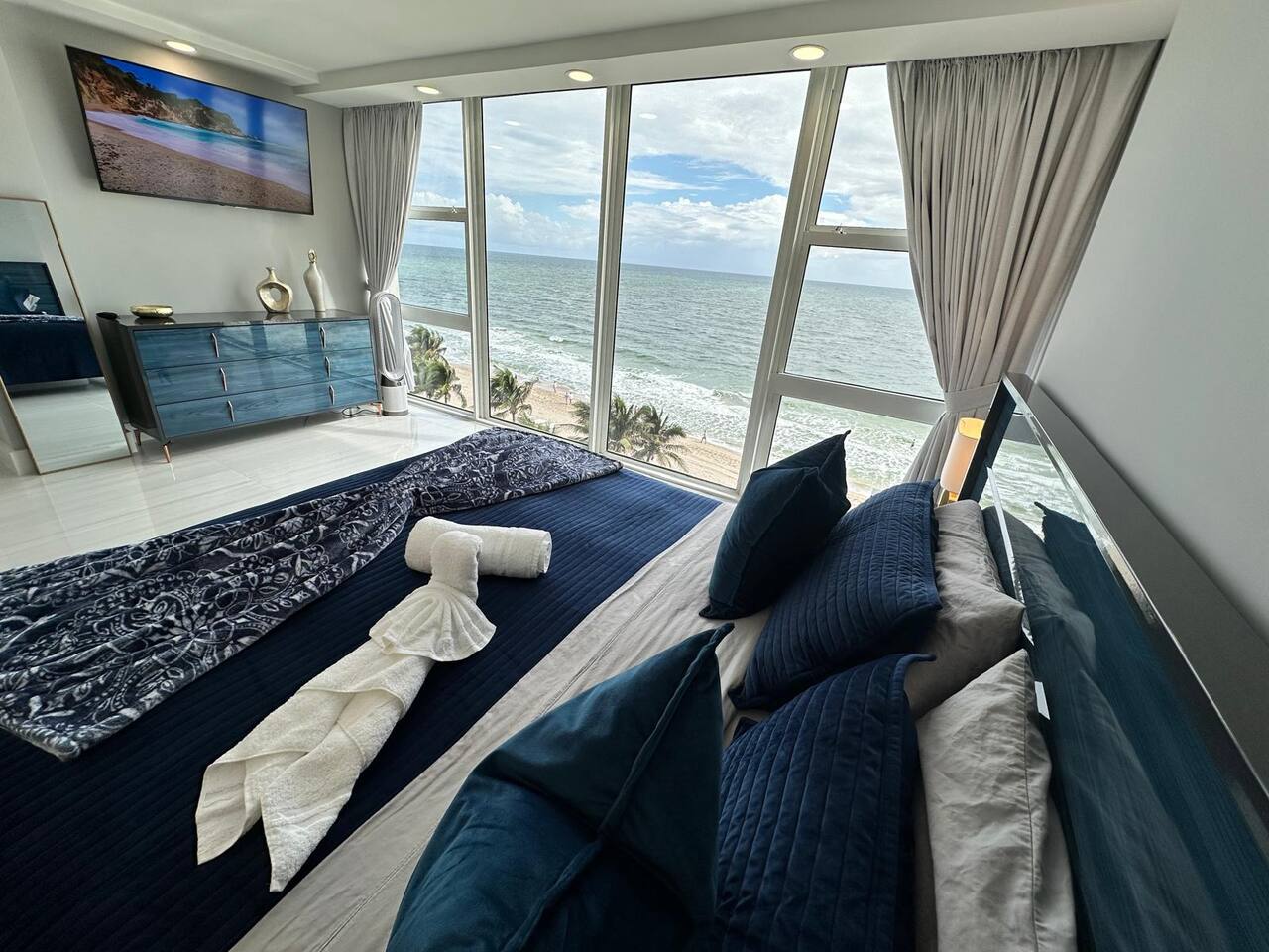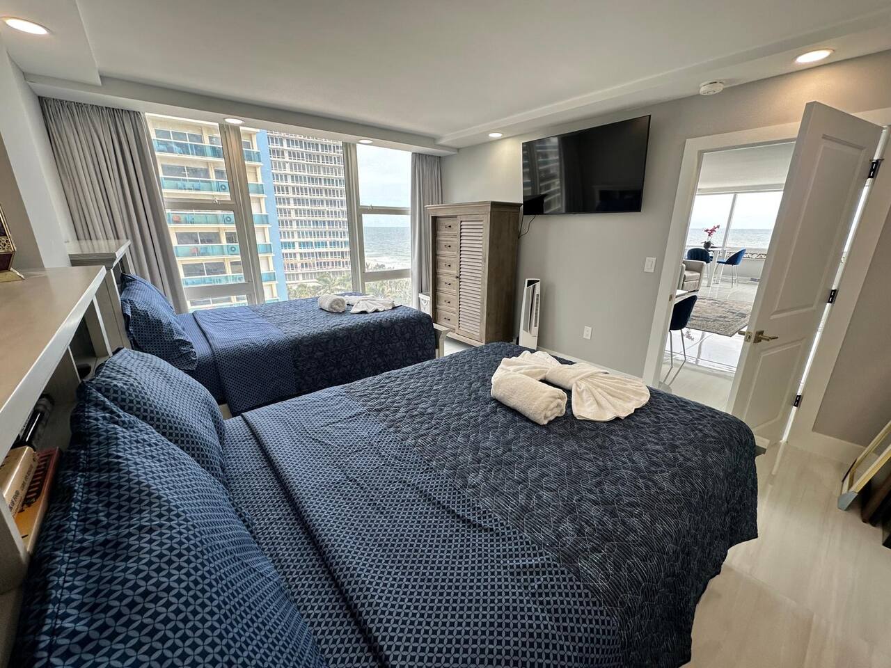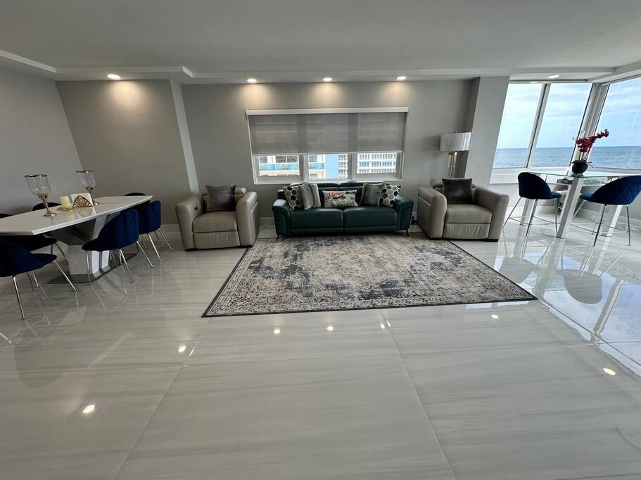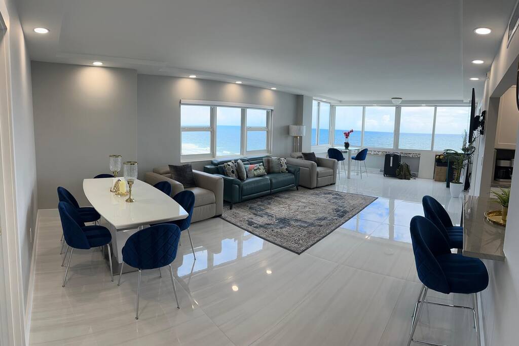 COMPLETELY RENOVATED CONDO APT, NEW LISTING! Make yourself at home in this 2-bedroom ocean front Fort Lauderdale retreat. This Condo apartment was just completely renovated, all new and updated. This superb apartment features a master suite with a cozy king bed and a guest suite with two comfortable full size beds, perfect for a relaxing stay. With amenities like free WiFi, guests can unwind and enjoy their time here. The two bathrooms come equipped with a hairdryer, make up removal towels, bath towels, soap and shampoo. The full size kitchen is equipped with a French door refrigerator, air fryer stove/oven, dishwasher and large microwave. The kitchen is stocked with plates, cups, pots, pans, utensils, etc. The on-site amenities include a large size pool, Bamboo Beach Tiki Bar & restaurant, Casa Calabria Restaurant & Lounge, Coffee Shop, Gym, Massage, convenience/gift shop, on-site wedding/event planner, beach volley ball and jet ski rentals on the beach, large coin/credit operated laundry room. This condo apartment is located within a resort hotel, 10 miles from FLL airport, walking distance to supermarket, shops and restaurants. Book now and get ready to Kickback, relax, and enjoy everything Fort Lauderdale beach and our apartment has to offer. HABLAMOS ESPAÑOL BEFORE YOU BOOK, READ, IMPORTANT INFORMATION ************************************************************** 1. Guest booking must provide a Gov't ID, answer the booking questionnaire and sign a rental agreement. 2. Please pay attention to your personal e-mail and booking app in-box for requested information. 3. Failure to provide the information within 24 hrs of booking approval could result in your booking being canceled. 4. Guest who booked and provided ID must be present at check-in. 5. Person who is booking must be 25 years of age or older. 6. No parties/loud noises inside premise, decibel monitor installed per City Ordinance Chapter 17. 7. City Ordinance Sec 16-127 (It is unlawful to allow for a sexual offender or sexual predator to occupy this residence). 8. PARKING: is arranged via VALET attendants only. $18* per car per day, unlimited leave & return.. 9. RENTALS: Beach chairs & umbrellas $12 each*. RESORT has a 3% credit card fee at the restaurants, bars, etc*. (* prices subject to change) 10. This corner unit has panoramic ocean & beach views. Every window has a beach and ocean view, no balcony. For guest & child safety, windows are locked. 11. NO PETS 12. NO SMOKING/VAPE: The building interior and apartments are no smoking areas, anyone smoking inside the building is subject to immediate fine/eviction. Smoking is permitted outside the building at designated areas. 13. RESORT AMENITIES: You have access to all resort amenities and common areas. 14. THIS IS A CONDOMINIUM APARTMENT located within a Resort/Hotel. This vacation rental is not affiliated with the hotel front desk, please direct any questions to your host, Troy at decobeach @ aol . com CND1622508 141C-346990 VR-24100037 BT-GEN-24100106