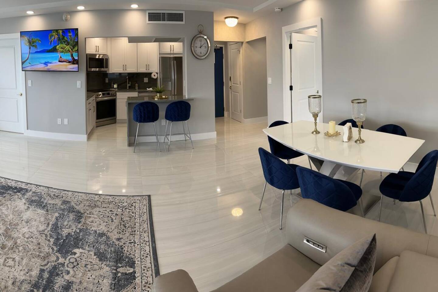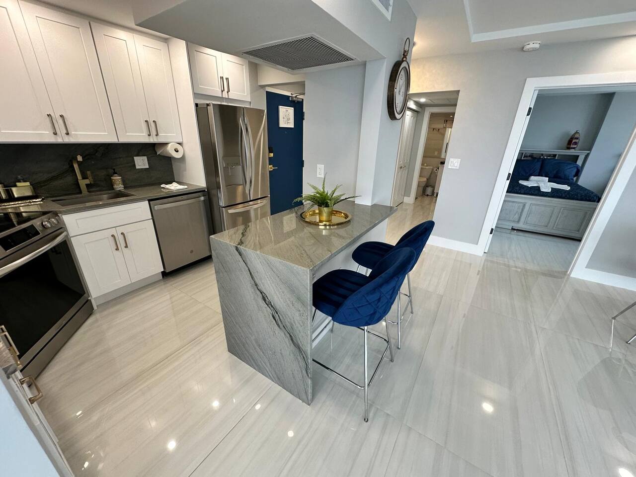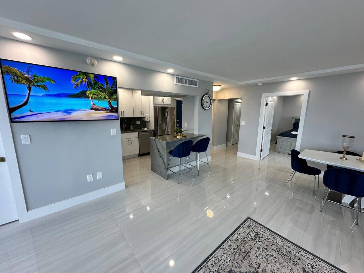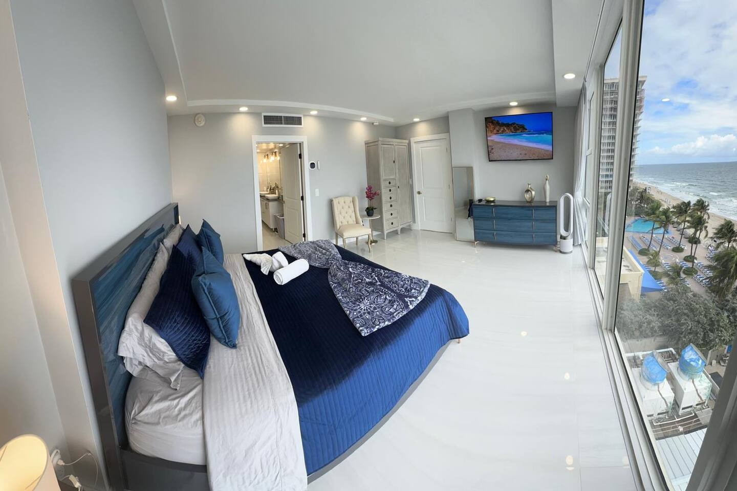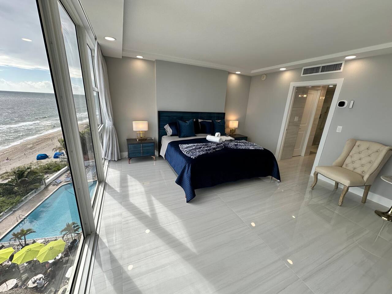 COMPLETELY RENOVATED CONDO APT, NEW LISTING! Make yourself at home in this 2-bedroom ocean front Fort Lauderdale retreat. This Condo apartment was just completely renovated, all new and updated. This superb apartment features a master suite with a cozy king bed and a guest suite with two comfortable full size beds, perfect for a relaxing stay. With amenities like free WiFi, guests can unwind and enjoy their time here. The two bathrooms come equipped with a hairdryer, make up removal towels, bath towels, soap and shampoo. The full size kitchen is equipped with a French door refrigerator, air fryer stove/oven, dishwasher and large microwave. The kitchen is stocked with plates, cups, pots, pans, utensils, etc. The on-site amenities include a large size pool, Bamboo Beach Tiki Bar & restaurant, Casa Calabria Restaurant & Lounge, Coffee Shop, Gym, Massage, convenience/gift shop, on-site wedding/event planner, beach volley ball and jet ski rentals on the beach, large coin/credit operated laundry room. This condo apartment is located within a resort hotel, 10 miles from FLL airport, walking distance to supermarket, shops and restaurants. Book now and get ready to Kickback, relax, and enjoy everything Fort Lauderdale beach and our apartment has to offer. HABLAMOS ESPAÑOL BEFORE YOU BOOK, READ, IMPORTANT INFORMATION ************************************************************** 1. Guest booking must provide a Gov't ID, answer the booking questionnaire and sign a rental agreement. 2. Please pay attention to your personal e-mail and booking app in-box for requested information. 3. Failure to provide the information within 24 hrs of booking approval could result in your booking being canceled. 4. Guest who booked and provided ID must be present at check-in. 5. Person who is booking must be 25 years of age or older. 6. No parties/loud noises inside premise, decibel monitor installed per City Ordinance Chapter 17. 7. City Ordinance Sec 16-127 (It is unlawful to allow for a sexual offender or sexual predator to occupy this residence). 8. PARKING: is arranged via VALET attendants only. $18* per car per day, unlimited leave & return.. 9. RENTALS: Beach chairs & umbrellas $12 each*. RESORT has a 3% credit card fee at the restaurants, bars, etc*. (* prices subject to change) 10. This corner unit has panoramic ocean & beach views. Every window has a beach and ocean view, no balcony. For guest & child safety, windows are locked. 11. NO PETS 12. NO SMOKING/VAPE: The building interior and apartments are no smoking areas, anyone smoking inside the building is subject to immediate fine/eviction. Smoking is permitted outside the building at designated areas. 13. RESORT AMENITIES: You have access to all resort amenities and common areas. 14. THIS IS A CONDOMINIUM APARTMENT located within a Resort/Hotel. This vacation rental is not affiliated with the hotel front desk, please direct any questions to your host, Troy at decobeach @ aol . com CND1622508 141C-346990 VR-24100037 BT-GEN-24100106